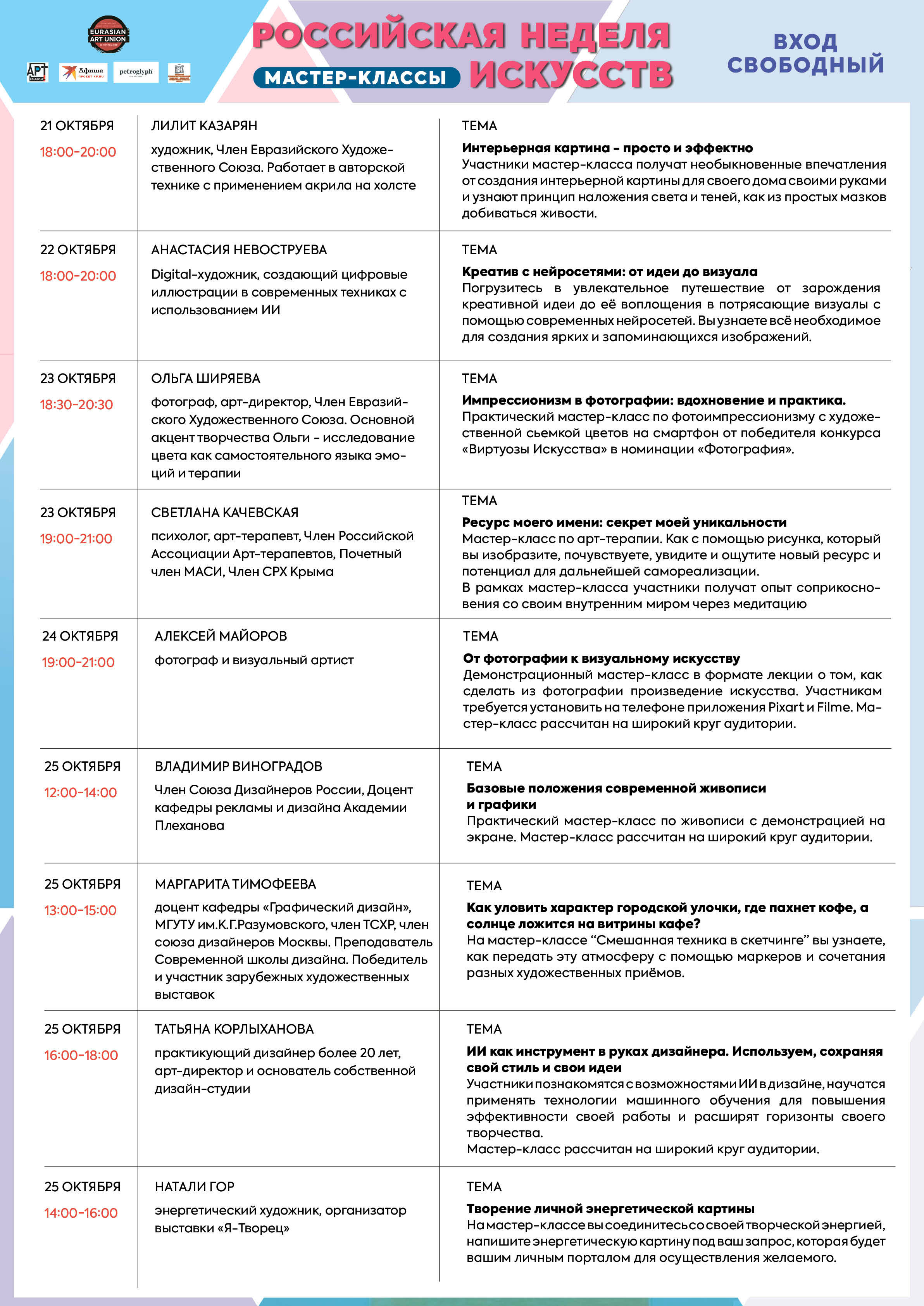 РАСПИСАНИЕ МАСТЕР-КЛАССОВ